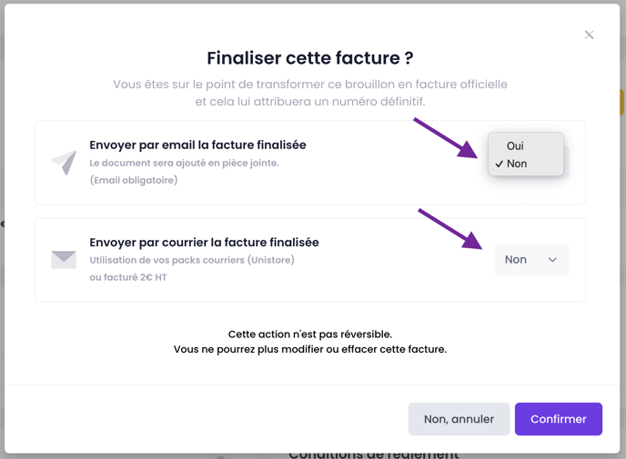 Il me reste à finaliser celle-ci en cliquant sur le bouton violet "Finaliser"