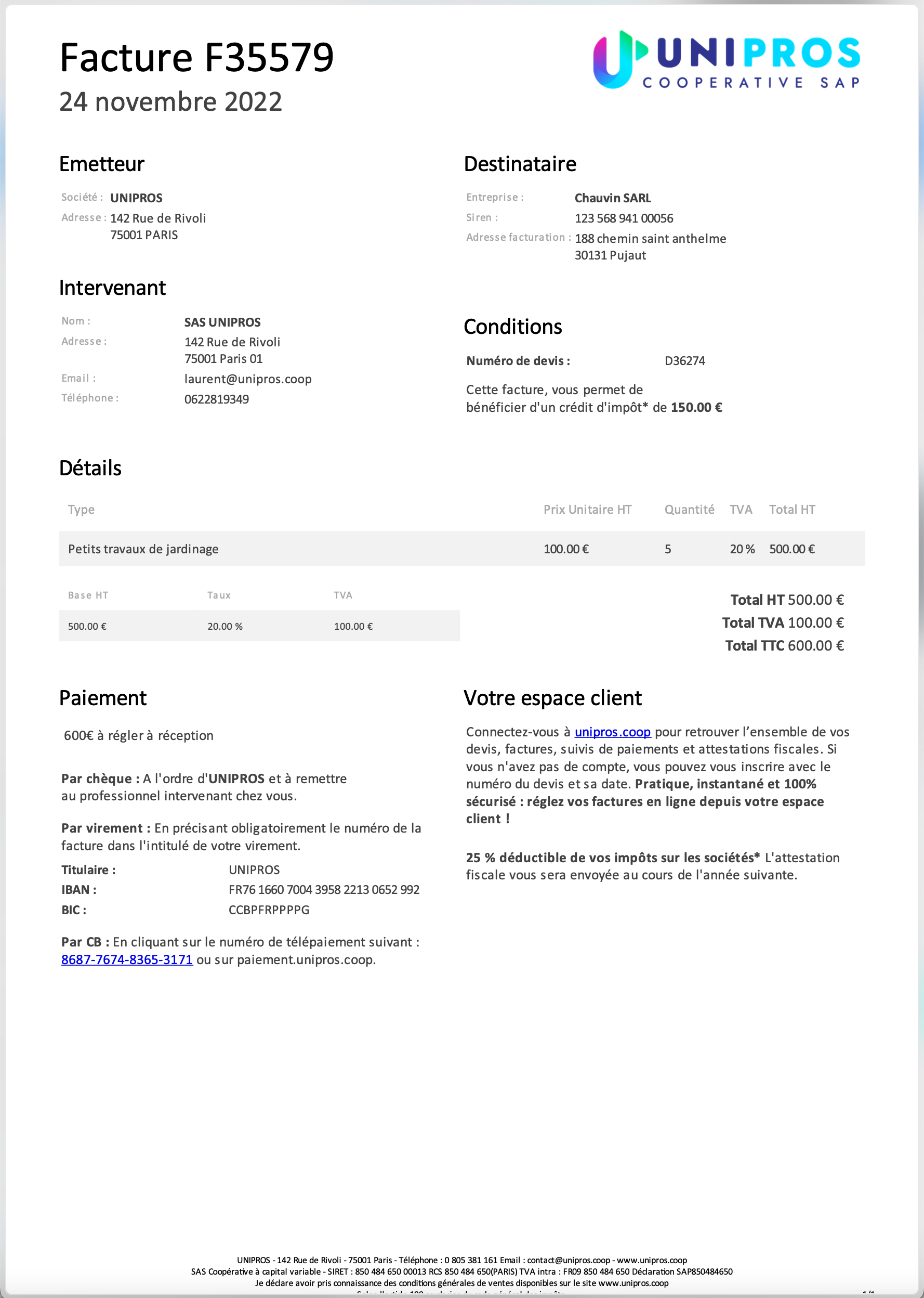Il retrouve également en PJ de ce mail sa facture en format PDF.
